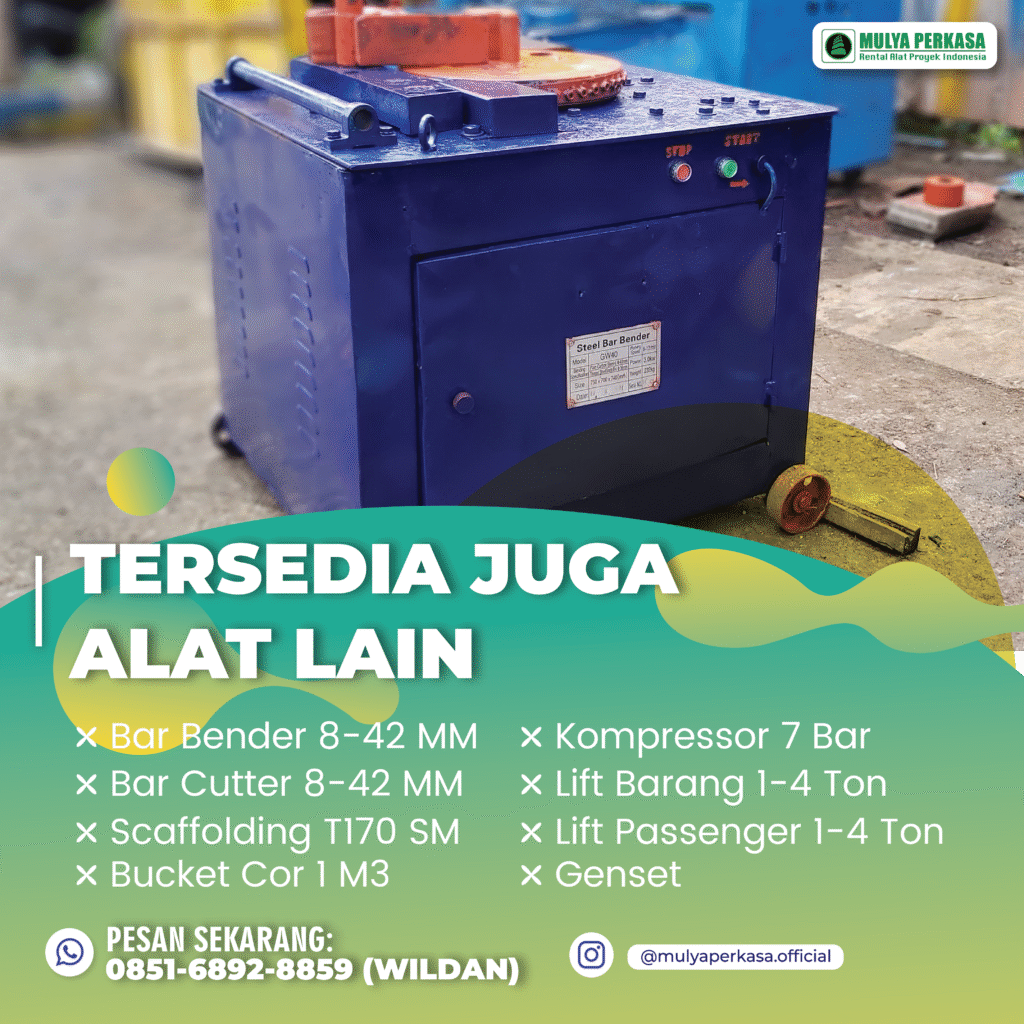 Dalam dunia konstruksi yang serba cepat, menggunakan bar bender bar bending Bandung adalah solusi tepat untuk mempercepat proses pengerjaan sekaligus menjaga kualitas hasil proyek. Dengan menyewa, Anda bisa lebih hemat biaya, praktis, dan mendapatkan unit yang selalu siap digunakan.