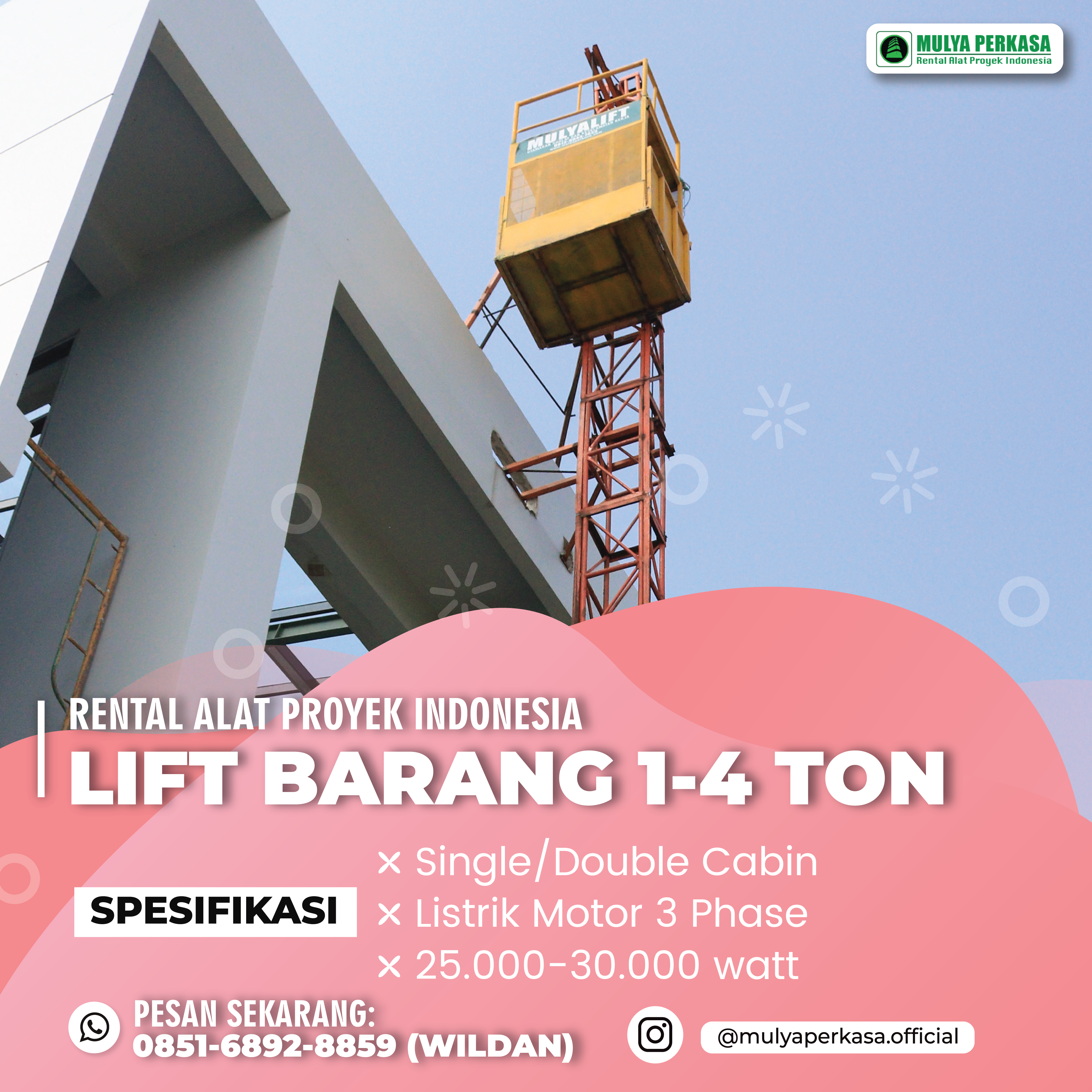 Jangan ragu untuk segera menghubungi kami di 0851-6892-8859 (WILDAN) dan nikmati kemudahan mengelola proyek dengan bantuan lift barang yang handal.
